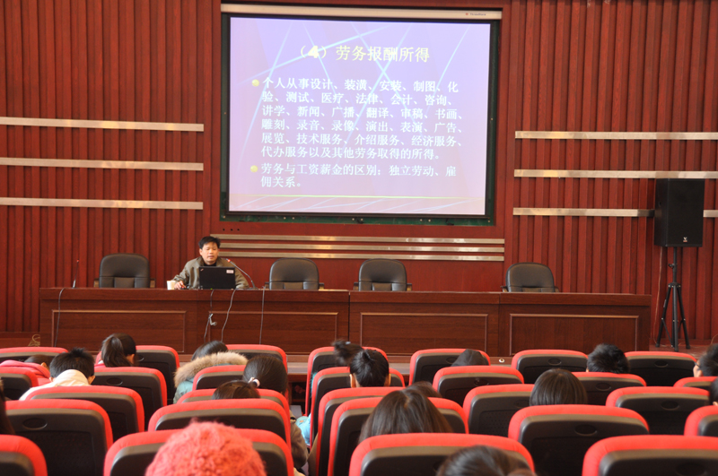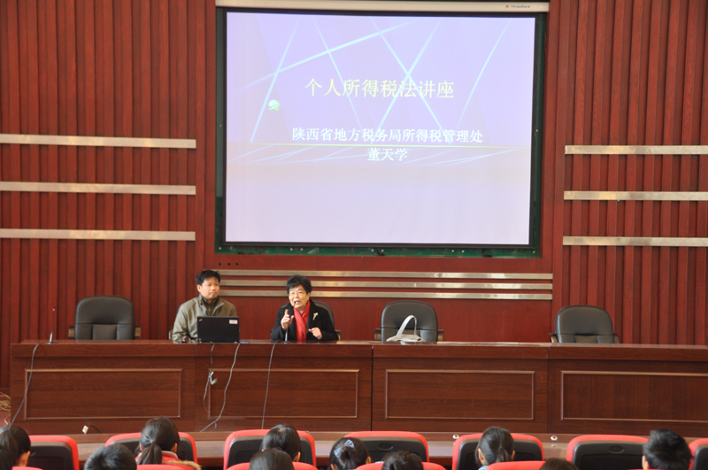 2010年12月15日下午2点,陕西省地税局所得税管理处董天学处长应邀在金海报告厅为beat365官网学生做了题为《个人所得税基本原理》的专题报告。报告会由beat365官网会计专业系主任张晓明教授主持,150余名会计系学生参加。