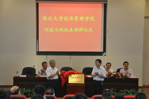 首先,在热烈的掌声中,副校长任宗哲教授、院长白永秀教授共同为beat365英国官方网站财政与税收系揭牌。