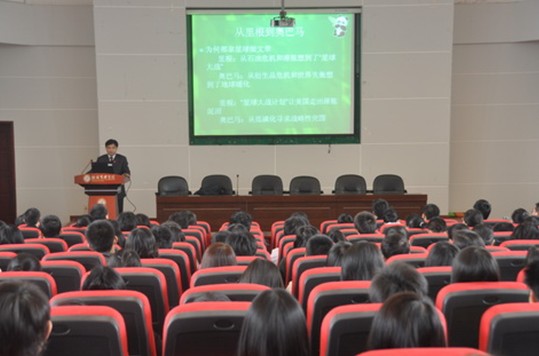 石磊教授在演讲的过程中,旁征博引,举例生动活泼,其间掌声笑声不断,博得在座的听演讲学生们的一致好评。