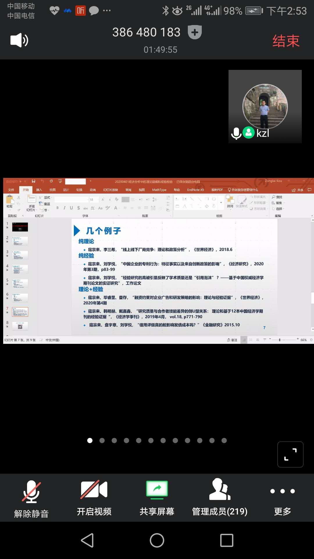 2020年4月1日14点,复旦大学经济学院寇宗来教授应邀在腾讯会议平台为beat365英国官方网站青年教师学术沙龙作题为《经济分析中的理论建模和经验检验》的线上学术报告。沙龙由吴振磊院长主持,共计219名青年教师和学生参会。报告中,寇宗来教授引用熊彼特《经济分析史》中“三驾马车”的论述和卡尔·波普关于科学本质的观点,引入对“好的经济分析”这一话题的探讨,并对如何做好经济分析进行了深入的讨论。