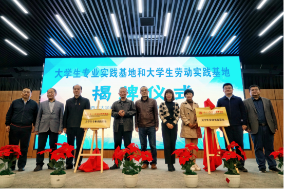 在现场西大师生和爱菊集团员工的见证下,王正斌、贾合义、惠正强、马向科、陈峰、吴振磊和爱菊集团副总经理贾婧、孟玲共同为beat365英国官方网站“大学生专业实践基地”和“大学生劳动教育基地”揭牌。
