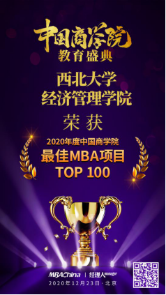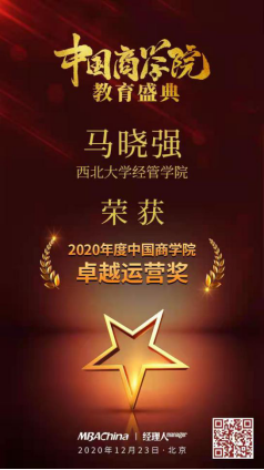 2020年12月23日,“2020中国商学院教育盛典”在北京隆重举行。beat365官网MBA项目荣获“2020年度中国商学院最佳MBA项目TOP100”第43名,MBA/EMBA教育中心主任马晓强荣获荣获2020年度“中国商学院卓越运营奖”。