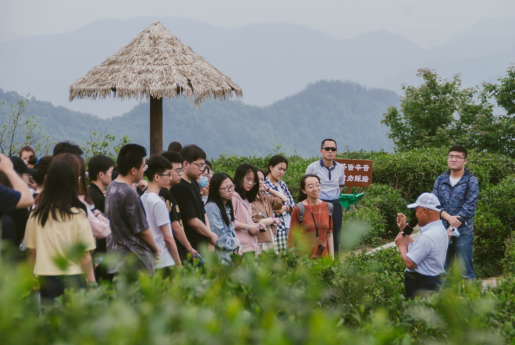 5月11日上午,全体调研师生赴平利县蒋家坪村参观调研。蒋家坪村以其茶叶产业闻名,2020年4月习近平总书记来陕考察时曾到该村凤凰茶山走访调研,并指出:“人不负青山,青山定不负人。绿水青山既是自然财富,又是经济财富。”在安康市发改委国民经济动员办公室副主任江华、平利县重点项目储备统建中心主任李宏斌、蒋家坪村支书罗显平等领导干部的陪同下,全体调研师生来到习近平总书记曾考察过的茶山,重走习近平总书记走过的路,感受蒋家坪村“以绿致富”的脱贫故事、体会习近平总书记关于环境保护和脱贫攻坚关系的重要论述。以眼望不尽的茶园为课堂,全体调研师生开展了一堂生动形象的专业思政课。