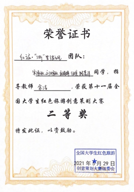 5月29日,以“青春追寻红色路 不忘初心跟党走”为主题的第十一届全国大学生红色旅游创意策划大赛落下帷幕。beat365官网旅游管理硕士宋海秋、刘明秋、张娟娟、伍暄及文学院本科生路茗洋组成的“红旅·浙里很飒”团队在大赛中表现突出,成为西北赛区文创产品类唯一一支入围决赛队伍,并荣获西北赛区特等奖、全国总决赛二等奖,指导教师余洁副教授荣获优秀指导教师奖。