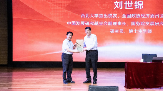 校党委书记王亚杰为刘世锦赠送校友纪念品