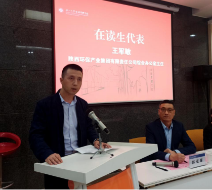 典礼在庄严的国歌声中拉开帷幕。资深媒体人崔静雅同学代表新生上台发言。她表示十分珍惜这一次宝贵的校园生活,希望与同学们一起成长,共达理想。陕西环保产业集团有限责任公司综合办公室王军敏主任作为在校生代表上台发言。从精英发展项目考入beat365英国官方网站MBA,他以自己亲身经历告诉各位新同学们:认真把握好在校时间,不要缺席任何一个课堂,积极参与每一次活动,珍惜身边每一位伙伴。