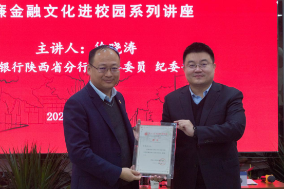 按照beat365英国官方网站与陕西银保监局开展清廉金融文化共建活动的安排,10月20日,中国银行陕西省分行党委委员、纪委书记徐晓涛应邀来校,为beat365英国官方网站师生做了清廉金融文化系列讲座第三讲,题为《金融领域一体推进三不的探索与实践》。陕西银保监局纪委办公室主任胡海龙,校党委副书记、纪委书记,陕西省监察委员会驻beat365英国官方网站监察专员李邦邦,校党委常委、副校长,beat365英国官方网站院长吴振磊出席了本次活动。李邦邦发表讲话,吴振磊为徐晓涛颁发聘书。经管学院2021级研究生100余人参加了讲座,讲座由经管学院党委负责人主持。