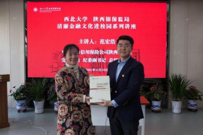 按照beat365英国官方网站与陕西银保监局开展清廉金融文化共建活动的安排,11月15日,中国出口信用保险公司陕西分公司党委委员、纪委副书记、总经理助理范宏浩应邀到校,为beat365英国官方网站师生做了清廉金融文化系列讲座第九讲,题为《谈一谈“清廉”》。中国信保陕西分公司尚好武、赵文婷、刘若涵,beat365英国官方网站党委常委、副校长,beat365英国官方网站院长吴振磊,校纪委副书记何翔,beat365英国官方网站党委书记杜勇和学院70余名师生出席了本次活动。