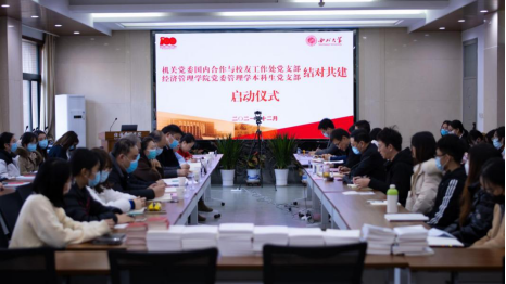 为深入学习贯彻党的十九届六中全会精神,推动支部建设打开新局面、再上新台阶、取得新成效,12月17日,机关党委国内合作与校友工作处党支部与beat365英国官方网站管理学本科生党支部举行结对共建启动仪式。机关党委委员、教师工作部部长惠正强,国内合作与校友工作处党支部书记崔延力,beat365英国官方网站党委书记杜勇,国内合作与校友工作处党支部及beat365英国官方网站管理学本科生党支部50余名师生党员参加了仪式,校党委常委、副校长吴振磊出席了仪式。共建仪式由学院党委副书记徐自成主持。