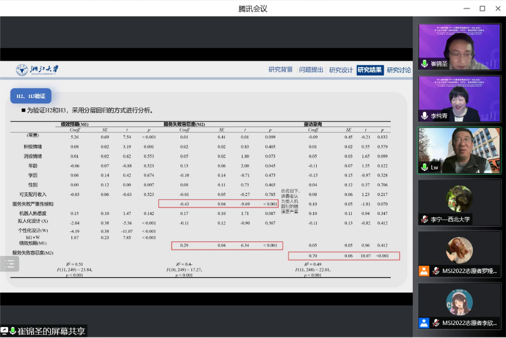 李纯青指导的博士研究生贺文华的论文《数字化产品客户体验:概念、量表开发与验证——基于现象学视角》,以及李纯青和张文明指导的硕士生李宁的论文《基于数字化交互平台的顾客AI体验:量化编制和效度检验》在会上做了汇报。