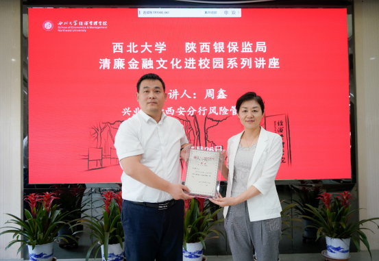 按照beat365英国官方网站与陕西银保监局开展清廉金融文化共建活动的安排,5月26日,兴业银行西安分行风险管理部副总经理周鑫应邀到校,为beat365英国官方网站师生做了清廉金融文化系列讲座的第18讲,题为《银行业清廉文化建设与合规管理的关系》。陕西银保监局张津崇、beat365英国官方网站纪委副书记何翔、兴业银行西安分行张蓉蓉、beat365英国官方网站党委副书记徐自成和学院40余名师生出席了本次活动。何翔为周鑫颁发清廉金融文化客座讲师聘书,讲座由徐自成主持。