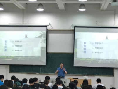 董国强以《大家一起谈就业》题目,从去年年底疫情期间同学们的日常生活谈起,围绕“世界怎么了?中国怎么办?青年怎么干?”三个问题展开讲授。他强调就业是最大的民生,面对持续的疫情影响、复杂的国际形势,经济发展面临巨大压力,今年就业形势也非常严峻,后面亦不容乐观。广大同学要充分认识当前严峻的就业形势,提前做好生涯规划,根据自身的情况合理确定就业预期,树立恰当的择业观、就业观,勤勤恳恳学习,脚踏实地奋斗。课程中,董国强还走入学生座位中,与同学们讨论最近发生的国际国内校内大事。