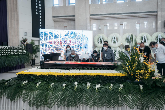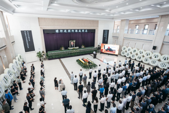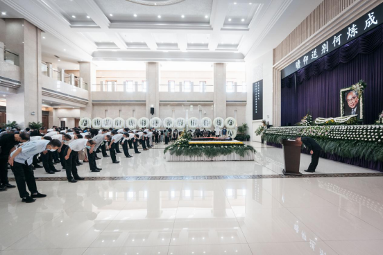 到场的领导、亲朋好友、学界同仁和师生以黄白菊花寄托哀思,三次深鞠躬向何炼成教授的遗体做最后告别。