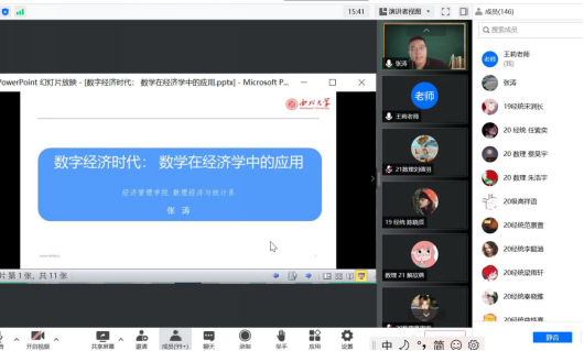 7月13日上午9点开始,张涛副教授做了《数字经济时代:数学在经济学中的应用》的讲座,主要围绕经济学的研究范式、研究方法及其演变;数学在经济学研究中的作用和应用;数字经济时代经济学定量研究方法的创新;数学模型和定量分析的局限性等方面展开,最后对数学模型和定量分析方法使用时需要注意的问题进行了总结。