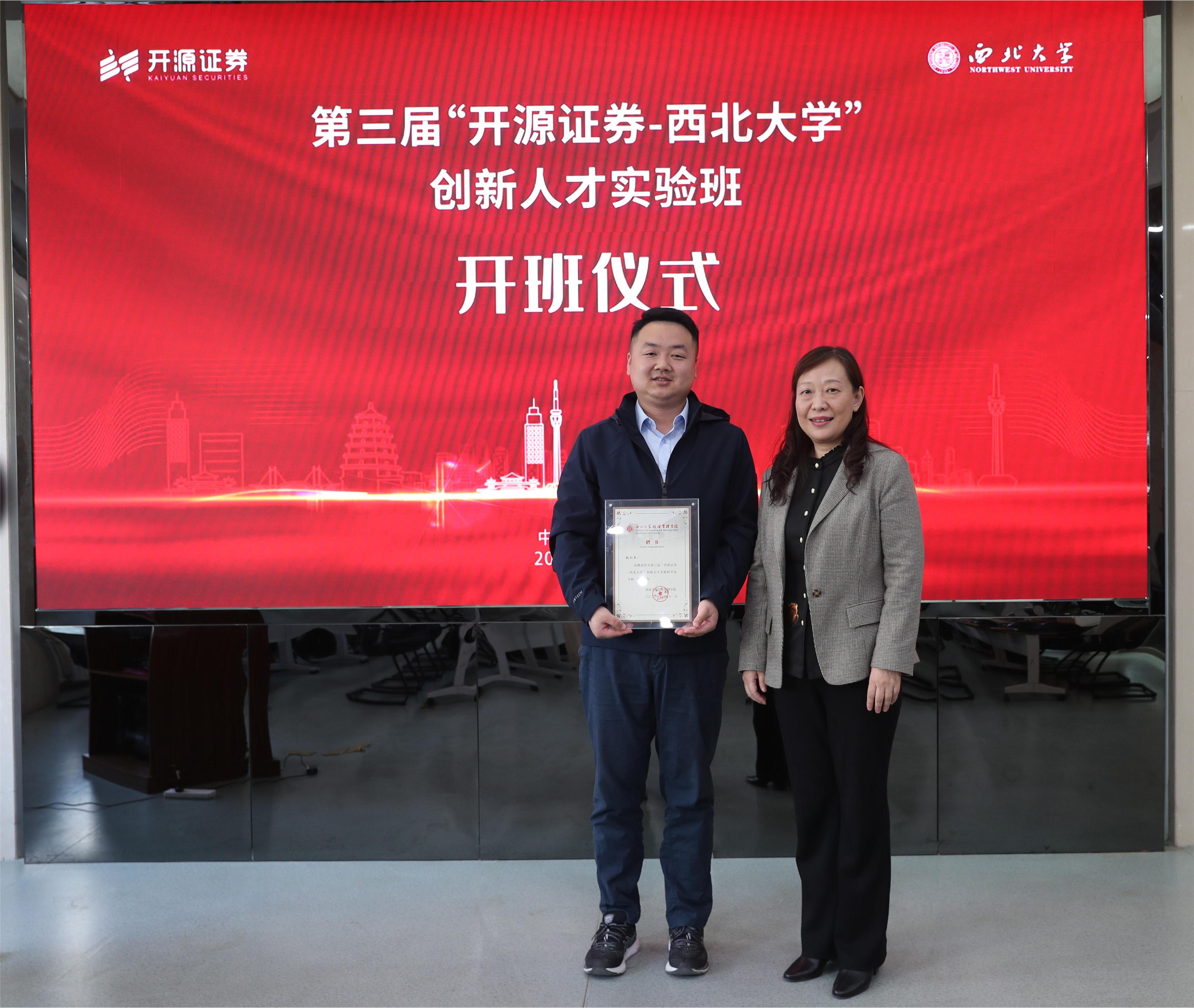 3月8日下午,第三届“开源证券-beat365英国官方网站”创新人才实验班开班仪式在beat365官网举行。第三届实验班全体学员,开源证券董事长李刚、总经理助理张国松、李青,招商银行西安分行副行长李凯,我校校长郭立宏,教务处处长曹蓉、国内合作与校友工作处处长崔延力、学生工作部副部长赵金哲、研究生院副院长寇楠、学院院长马莉莉及学院班子成员共40余人参加了开班仪式。仪式由学院党委书记杜勇主持。