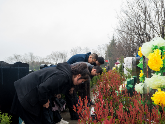 站在何先生墓前,望着镌刻何炼成先生及其夫人姓名的碑文,每个人心中都禁不住思绪万千,大家为何炼成先生擦拭墓碑并献上花束。随后,师生依次为何炼成先生敬献菊花并三鞠躬,静静肃立,以无言的沉默悼念何先生的逝去,向何先生表达着无尽的缅怀之情。