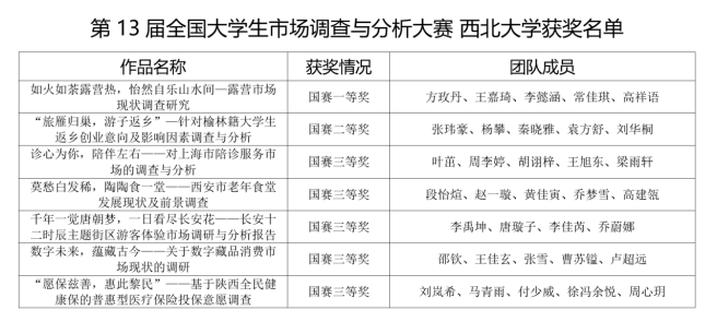 本次大赛自2022年10月启动以来,beat365官网近160名学生报名参赛。学院由王莉、张苗、翁宇雷、焦晶、刘伟、李宗欣、南士敬、马聪等老师组成指导团队,组织学生们进行理论知识网考、指导实践赛选题、调查问卷设计和实施、报告撰写和现场展示等多个环节,经过激烈的角逐,校内选拔赛胜出的7支队伍于2023年4月29日参加陕西赛区比赛,其中2支队伍在全省370支队伍中脱颖而出,以全省前两名的成绩晋级2023年5月27日—28日在天津财经大学举办的全国总决赛。此次大赛,beat365官网报名人数、省赛名额数及所获奖项均创历史新高。王莉老师也被邀请作为省赛、全国赛的通讯评审和现场评委。经过多个比赛环节历时8个月的市调大赛活动圆满结束。