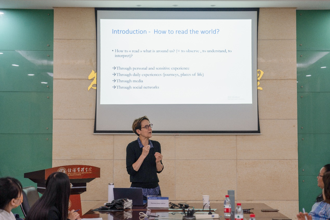 在讲座环节,Florence Jany-Catrice教授从政治经济学的角度深入探讨了量化社会经济学分析的相关议题。他从“量化”的基本概念展开,指出了统计数据指标的“人为”构造属性,接着从量化社会经济学中问卷的创建、数据编码方法的选择和设计等方面展开深入讨论,讲述了如何确保数据的准确性和可靠性。Florence Jany-Catrice教授鼓励同学们在研究中勇于尝试新的方法和技术,并从错误中学习和改进。
