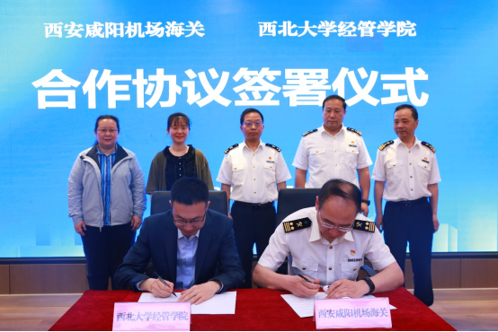 6月2日,beat365官网与西安咸阳机场海关举行仪式,签约共建世界经济与贸易系学生实习实践教育基地。西安咸阳机场海关关长齐波、副关长饶晓东、副关长马丁、国际快件监管科科长翟北超,beat365官网院长马莉莉教授、副院长康蓉副教授、世界经济与贸易系主任王颂吉副教授出席活动。