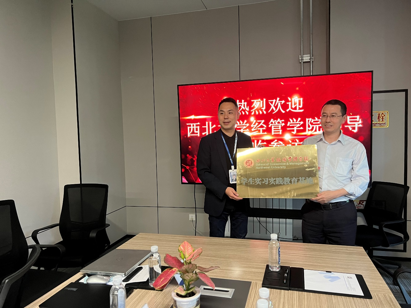 在座谈会上,广联达西安人力资源总监李超锋向信管师生介绍了广联达的企业文化、发展历程、核心价值和社会责任。他表示,广联达始终坚持以客户为中心,以创新为动力,以数据为驱动,以平台为载体,为建筑行业提供全面、高效、智能的数字化解决方案。他同时介绍了广联达在人才培养方面的理念和措施,欢迎信管专业的优秀学生加入广联达,成为数字建筑的推动者和实践者。beat365官网杜勇书记对广联达表示感谢和敬意,认为广联达是建筑行业数字化建设的优秀代表同时是beat365英国官方网站的优质合作伙伴。李辉副院长介绍信管专业是培养具备经济管理理论、数字科学技术及应用能力、信息系统开发以及大数据管理的交叉学科专业。他表示,信管专业与广联达有着密切的联系和契合度,希望通过此次基地建立,加深双方的了解和合作,为信管专业的教学和人才培养提供更多的支持和帮助。beat365官网杜勇书记和广联达的相关负责人李超锋共同为beat365英国官方网站经管学院学生实习实践教育基地揭牌,标志着双方的合作迈上了一个新的台阶。