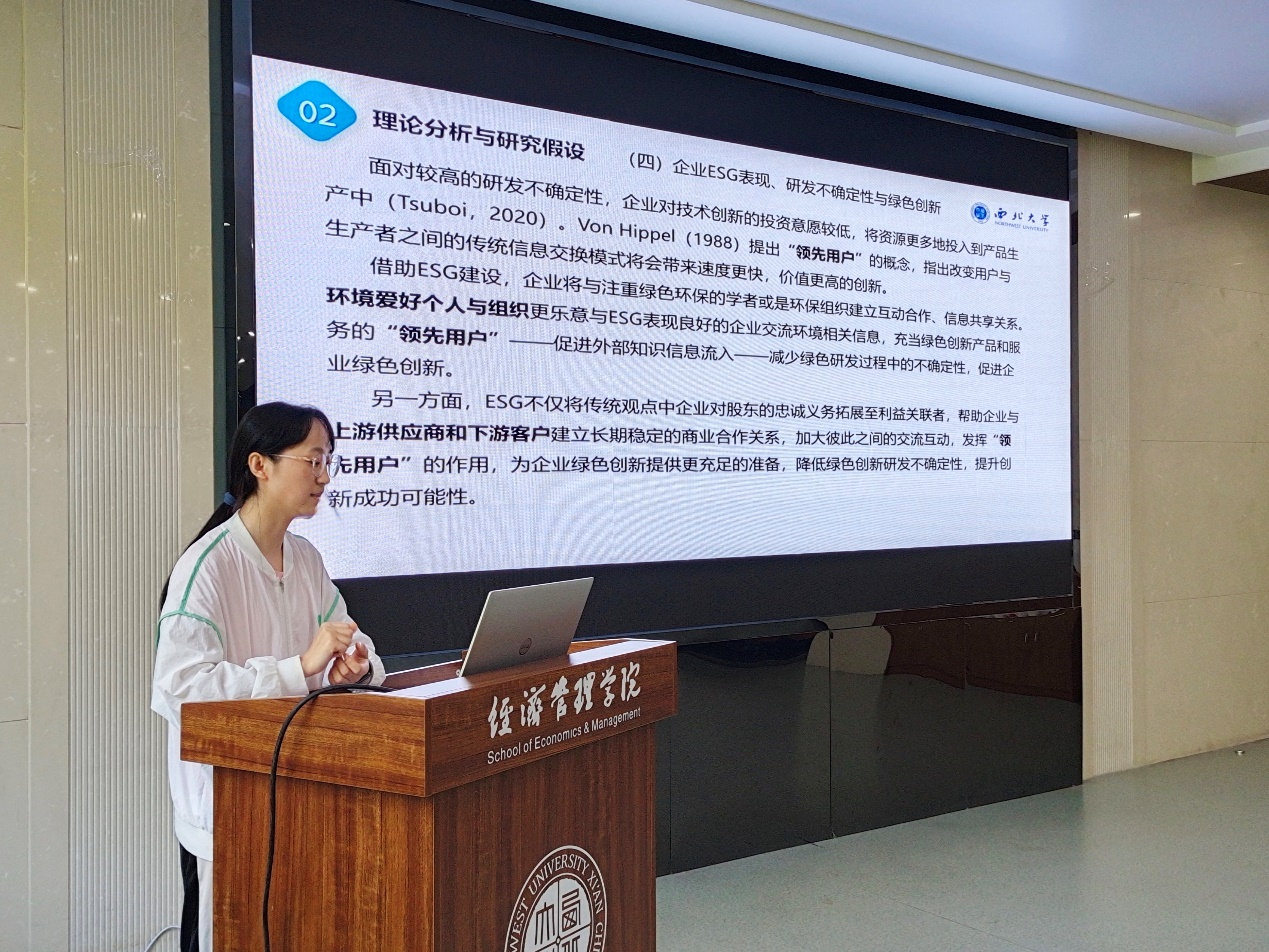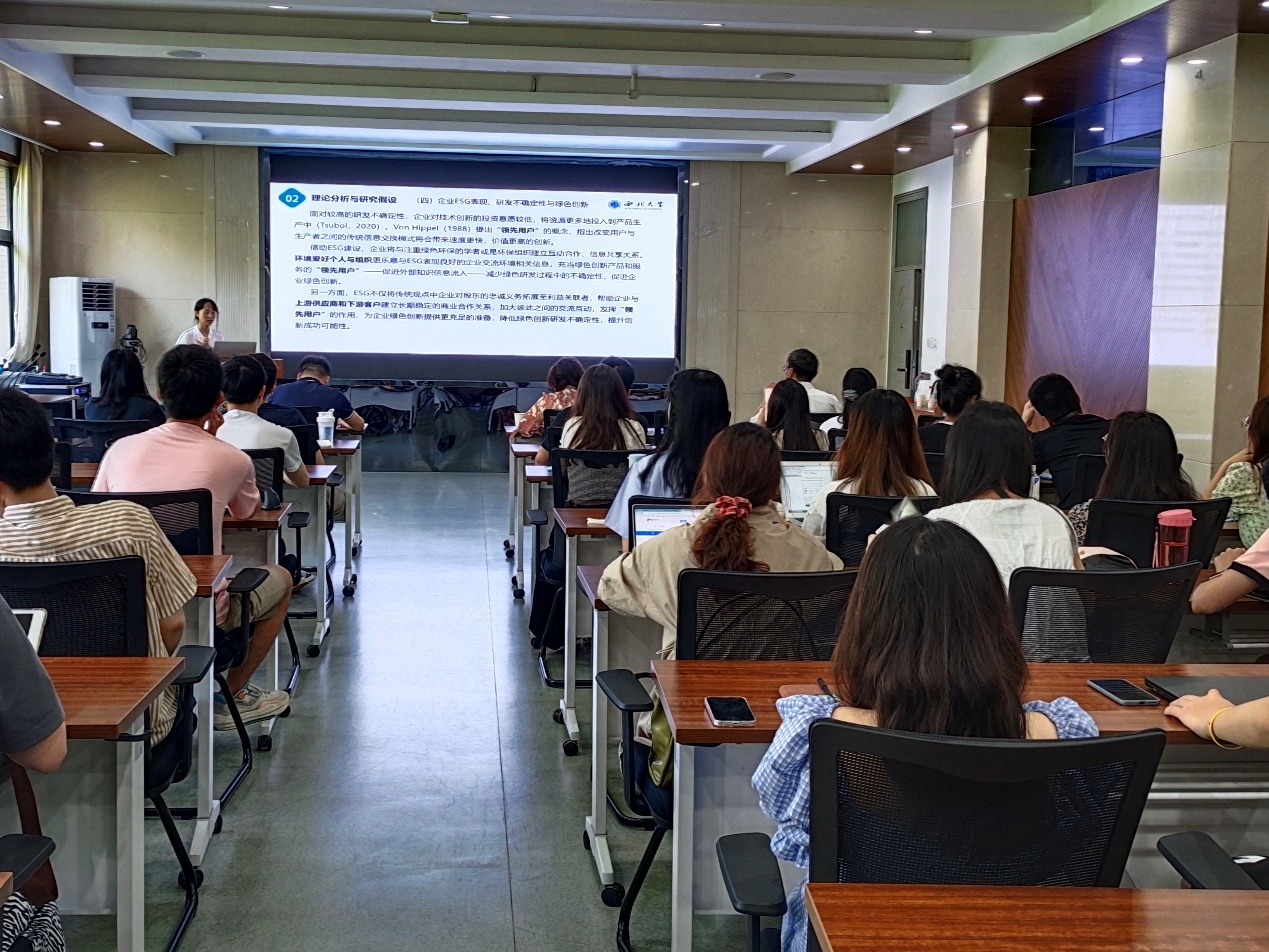 6月13日,beat365英国官方网站研究生论文工作坊第九讲在长安校区8318会议室举行。2022级人口、资源与环境经济学硕士研究生康秀华分享了文章《担当何以自立:企业ESG表现对绿色创新的影响》,讲座由beat365英国官方网站副院长岳利萍教授主持,beat365英国官方网站赵仁杰副教授和葛鹏飞副教授应邀点评。