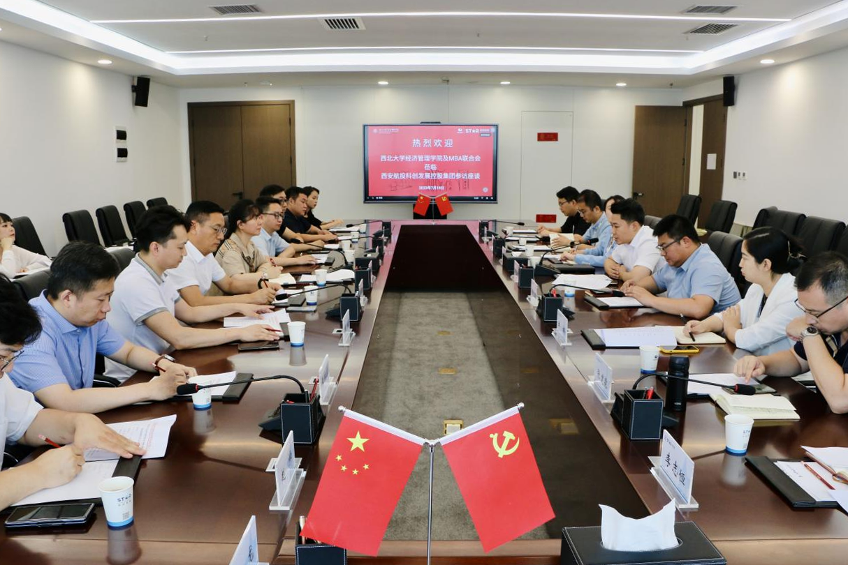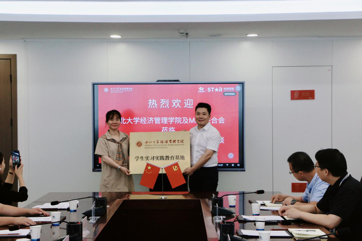 7月19日,beat365英国官方网站院长马莉莉、MBA/EDP中心主任郭亚军一行前往西安航投科创控股集团举行校企合作座谈暨beat365英国官方网站学生实习实践教育基地和beat365英国官方网站MBA/EMBA教学实习基地揭牌仪式。西安航投科创控股集团执行董事辛昱辰、总经理顾元吉、各部门负责人,MBA/EDP中心和联合会师生代表共同参加了此次活动。