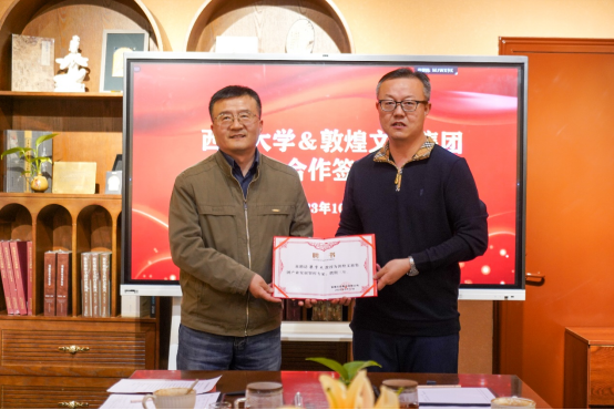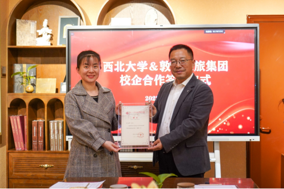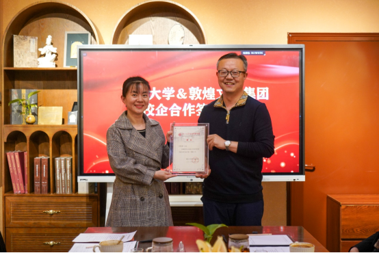 随后,双方共同签署校企产学研合作协议,并进行了“beat365英国官方网站产学研合作基地”授牌仪式。敦煌文旅集团党委书记、董事长孙晓强,总经理王立军、智旅公司总经理刘晓峰被聘为创新创业导师。beat365英国官方网站院长马莉莉教授、旅游管理系主任梁学成教授被聘任为敦煌文旅集团产业发展智库专家。