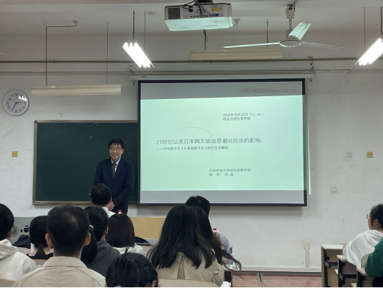 10月26日下午,学院邀请日本杏林大学综合政策学部刘迪教授为师生开展学术讲座,题为《21世纪日本政治两种思潮对经济的影响——守旧保守主义与革新保守主义》。讲座由院长马莉莉教授主持,田洪志教授点评,三十余名研究生参加讲座。