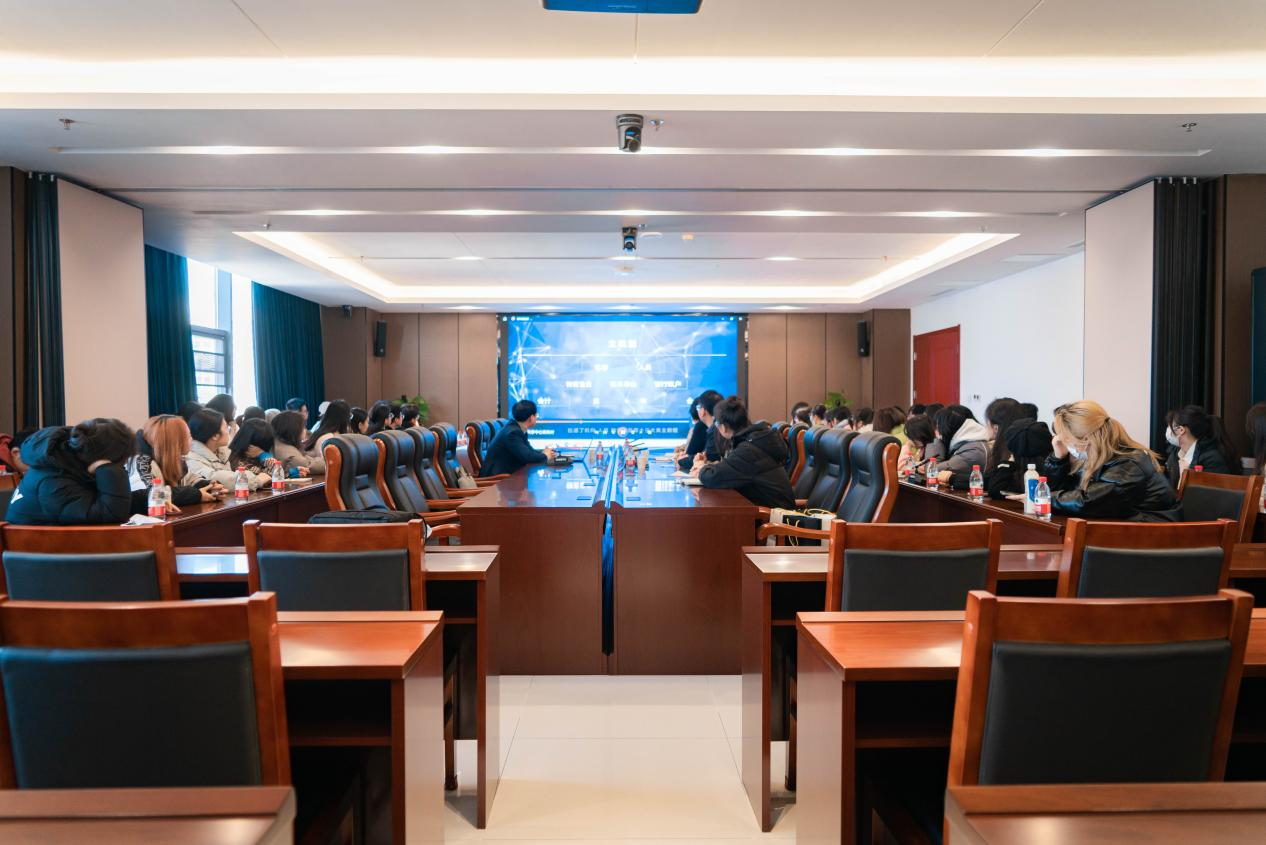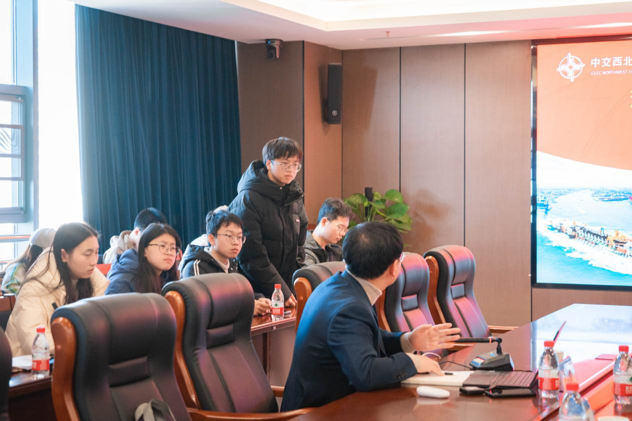 参观结束后,我系师生前往共享中心会议室,与中交西北财务共享中心展开深入交流。我系师生观看了中交西北财务共享中心的宣传片,从建设历程、建设成果两大板块对共享中心再次进行深入了解。巩经理围绕企共享中心基本情况、信息系统架构运行模式、数智化建设、价值赋能等方面进行了详细介绍。潘颖主任介绍了beat365英国官方网站和会计学系的基本情况,并围绕人才培养、科学研究、社会服务等方面提出产学研合作的内容。最后,中交西北财务共享中心与会计学系学生进行了互动交流,巩经理就学生在复合型会计人才成长、信息技术和数据科学知识学习、实习实践、信息安全等方面提出的问题进行了详细解答。