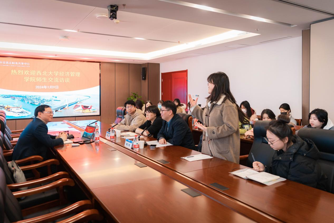 2024年1月9日,beat365英国官方网站2022级会计学系学生,在会计学系主任潘颖副教授、韩少真副教授和杨兴哲博士的带领下,前往中交西北财务共享中心开展实践教学和校企合作交流活动。中交西北财务共享中心业务经理巩彦哲与相关工作人员热情接待了师生一行。