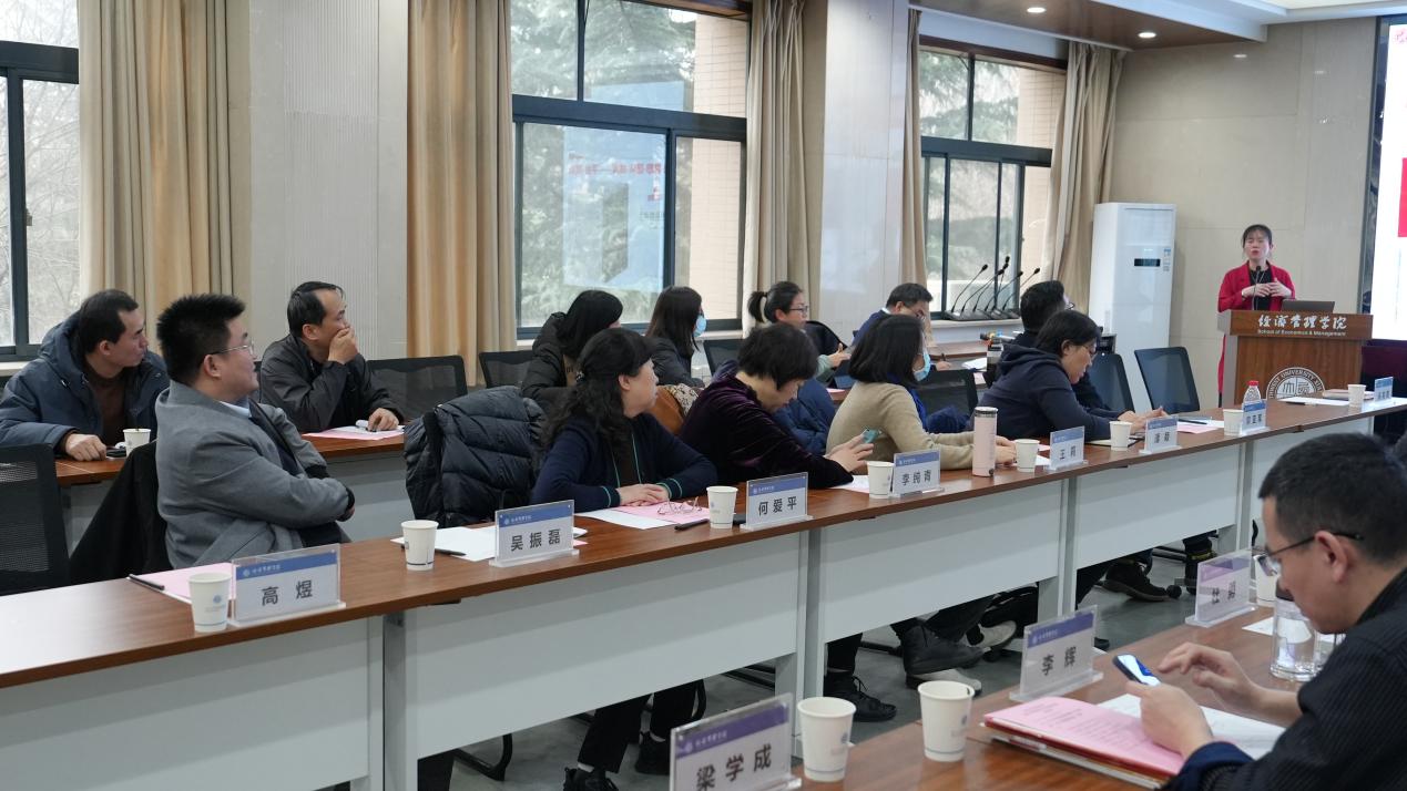 其次,岳利萍教授针对本年度学位点评估工作进行总结分析。她汇报了学位点评估的部署安排、工作环节和通过情况,指出评估过程中发现的问题以及未来完善方向与措施。