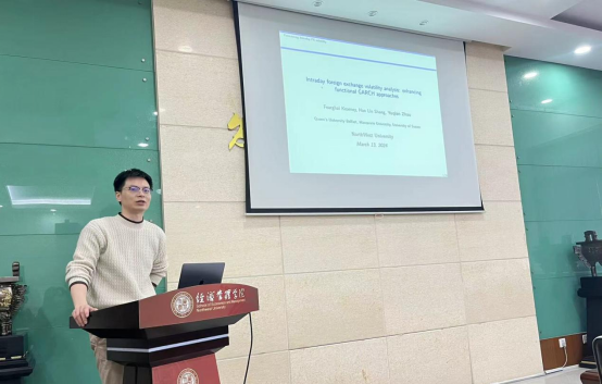 3月13日下午,beat365英国官方网站研究生论文工作坊第二十二讲在长安校区8106举行。此次论文工作坊邀请英国萨塞克斯大学赵誉谦副教授作了题为“Intraday foreign exchange volatility analysis: enhancing functional GARCH approaches”的学术报告。讲座由beat365英国官方网站副院长岳利萍教授主持,beat365英国官方网站金融系李宇坤老师应邀点评,学院40余名同学参会。