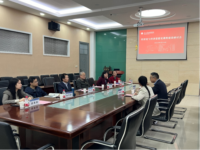 下午,朱富强老师与学院两史课程相关授课教师进行座谈,宋宇教授、范王榜副教授、赵麦茹副教授、翁宇雷副教授、师荣蓉副教授、段雨晨博士等先后结合自身在两史课程教学过程中的思考与课程建设问题与朱富强老师进行了交流。院长马莉莉教授指出两史课程建设是理论经济学一流学科建设的重要环节,学院将进一步强化两史课程教学团队建设力度,提升学院两史课程教学与科研能力。