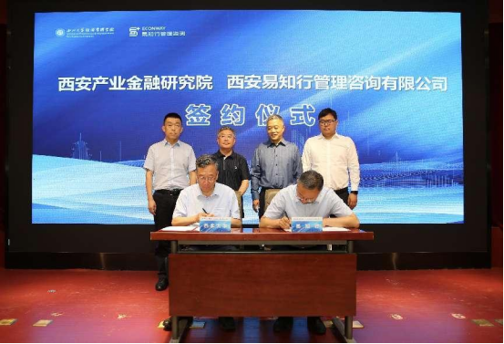 论坛上,西安产业·金融研究院执行院长王满仓教授与西安易知行咨询集团董事长陈强博士共同签署战略合作协议,旨在充分发挥双方的优势和资源,共同推动西安市产业、金融领域高质量发展贡献智慧和力量。