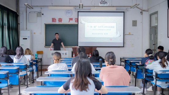 专题讲座环节,美国伊利诺州立大学的张宏霖教授主讲了《中美融合—脱钩的影响》,beat365英国官方网站哲学学院的袁志伟教授主讲了《“一带一路”与中外文明交流融通——以长安古文明史迹为中心的考察》。