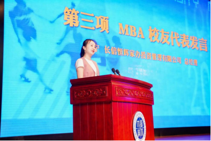 2010级MBA校友,长信恒辉家办投资管理有限公司总经理田宁作为校友代表发言。她回顾了她在西大的学习生涯,以个人发展经历,鼓舞新生要做对且艰难的事情,终将收获意想不到的回报。