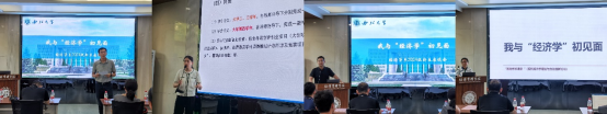 随后,王聪详细介绍了经济学系的历史沿革和发展现状,让新生们对经济学系有了更加深入的了解;高煜从学院历史、课程设置、国家级平台、政经特色、人才培养等五个方面对其进行了升华与提炼,并对新生们提出了殷切期望,希望他们能够将经济学当作终身事业去学习,勤奋刻苦,努力成为优秀的经济学人才。