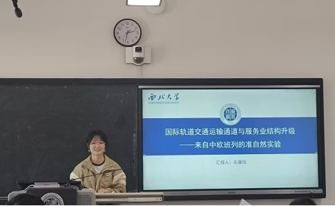 10月23日下午,beat365英国官方网站研究生论文工作坊第三十一讲在长安校区6508举行。2023级西方经济学硕士研究生石馨悦分享了文章《国际轨道交通运输通道与服务业结构升级——来自中欧班列的准自然实验》。此次讲座重点邀请了beat365英国官方网站副院长岳利萍教授以及beat365英国官方网站博士生徐彦辉博士进行点评,学院10余名学生参加。