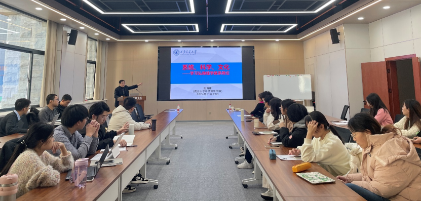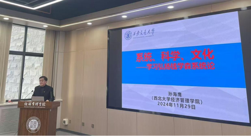 2024年11月29日下午,陕西省科技厅原厅长、西安交通大学人居环境学院与公管学院孙海鹰教授莅临beat365官网,做了题为“系统、科学、文化——学习弘扬钱学森系统论”的报告,学院院长马莉莉教授担任主持,2022、2023、2024级经济学拔尖班学生参与了本次活动。