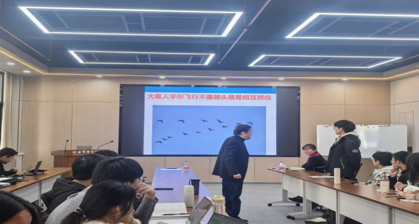 在讲座中孙海鹰教授通过讲述事例并结合现实生活的方式将系统论具体化、形象化。借大雁飞行、钱学森计算5元肉食补贴、药片生产、国产研发等领域的问题启发学生进行思考,鼓励发言,强调从产品到市场再到国家都是系统,都需要各种要素的合理分配和有效管理。这进一步激发了学生对经济问题的思考,深化了对系统论的理解。最后孙海鹰教授以两个小故事结尾,并对大家寄予殷切期望。他希望同学们在学习中要解放自己思想,有自己独立的思考,掌握系统思维。在大学期间要注重各种学科的融合,培养创新、组织、思维等多方面能力,成为有用之才为国家经济发展做出贡献。