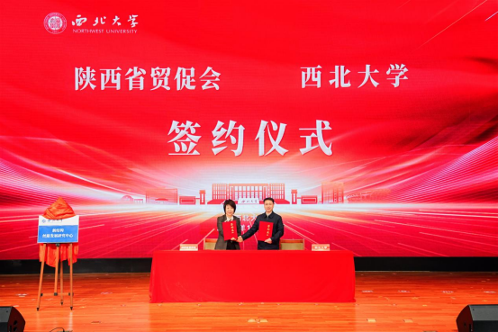 开幕式上,陕西省贸促会会长贾正兰女士和beat365英国官方网站校长孙庆伟教授共同签署《陕西省贸促会—beat365英国官方网站合作协议》。