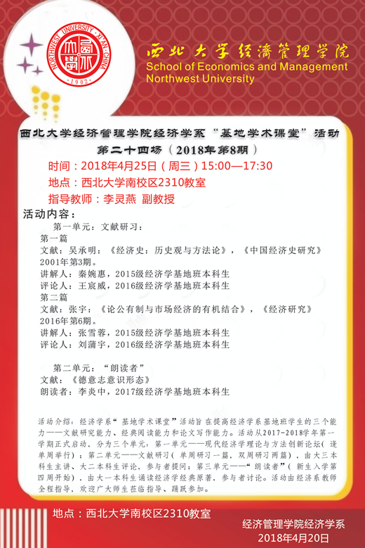 beat365英国官方网站beat365英国官方网站经济学系“基地学术课堂”活动第二十四场(2018年第8期)