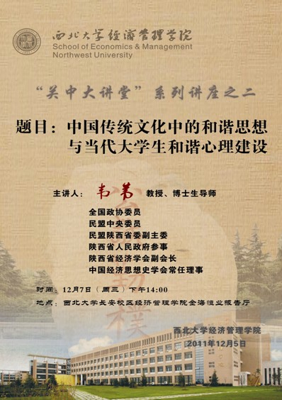 题 目:中国传统文化中的和谐思想与当代大学生和谐心理建设