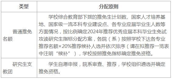 根据教育部下达的2024年推免生名额,综合考虑学科专业发展需要,我校推荐指标分配原则制定如下: