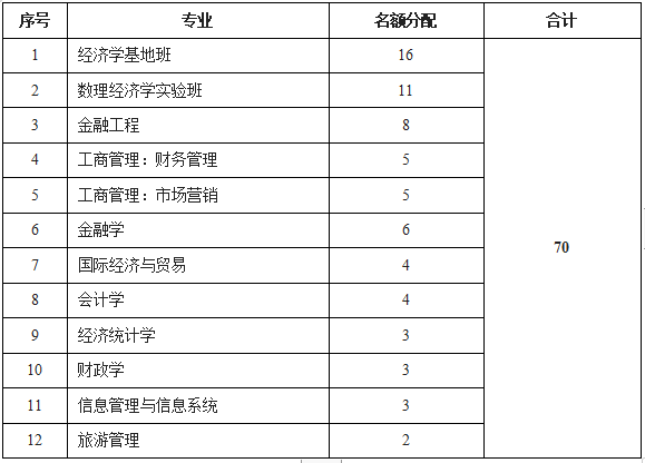 2024年beat365官网各专业推免名额分配表