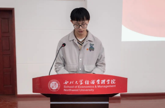 学院青马讲师团成员代表戴昶发言。她分享了自己在校青马班担任班主任的经历,鼓励同学们积极参与志愿服务工作中来,学院讲师团的老师们会认真备课授课,和大家一起紧贴时政、共研经典,努力引领马克思主义理论学习的潮流,秉承西大“公诚勤朴”的校训,在新的征程中心有所信、行稳致远,成为新时代坚定的青年马克思主义者。