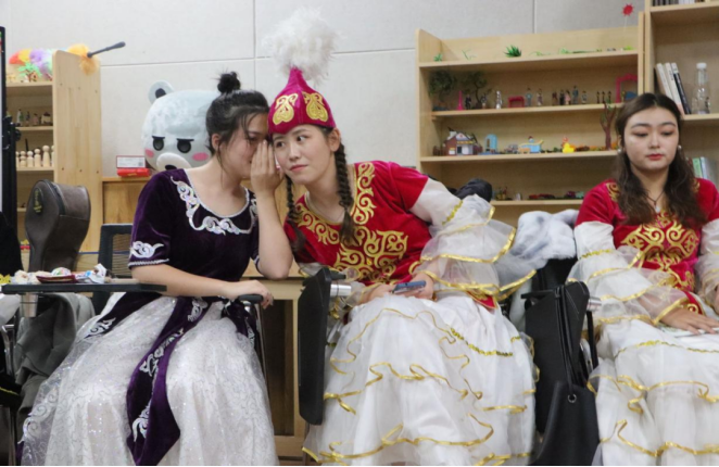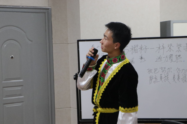 身穿红色长裙,佩戴民族发饰的维吾尔族、哈萨克族同学们为我们带来了一场视听盛宴。热情洋溢的舞蹈和深情款款的歌声无不令人动容。