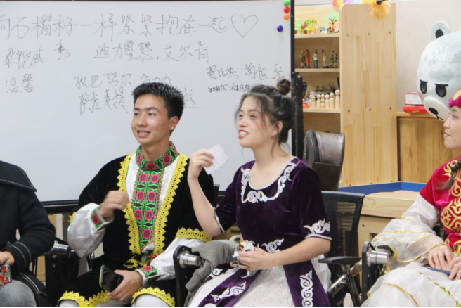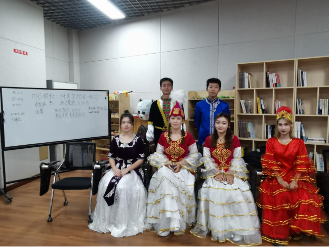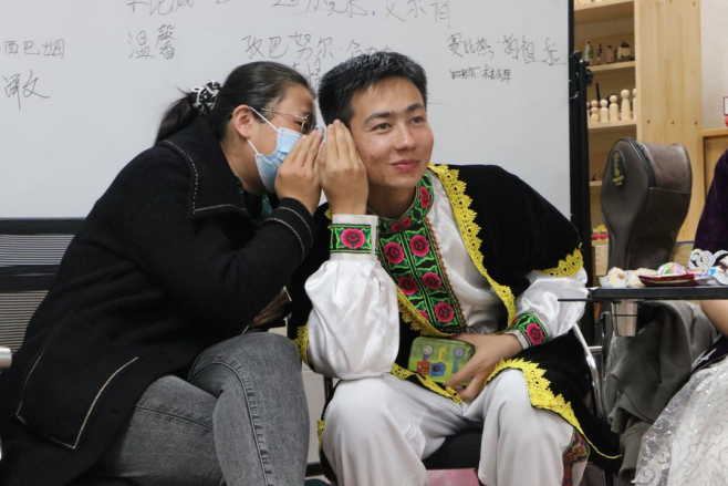 最后一个游戏是交头接耳。游戏前,同学们一起观看了有关回族、满族、土家族、维吾尔族文化的纪录片《民族底片》,在交头接耳游戏中失败的一队成员依次讲述自己对少数民族的了解以及观看完纪录片选段的感受,进一步丰富了同学们对少数民族居住地区、生活习惯、文化风俗等多方面的认知。