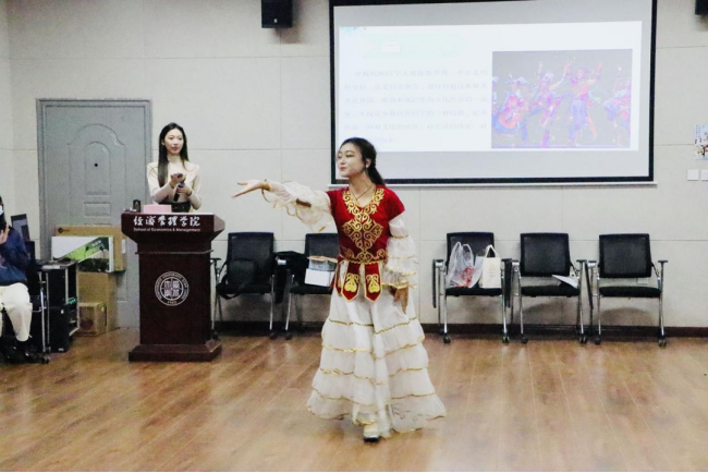 活动的第二个环节:观看民族表演,体会歌舞之美。