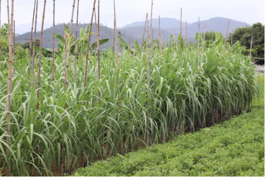 所谓树大招风,甘蔗也一样。一根甘蔗的长度一般可以达到3米以上,虽然长得越高,产量越高,但这同时也给蔗农带来了管理难题,那就是要防止甘蔗被风刮倒、折断。为了防止三米多高的甘蔗被风刮倒,蔗农需要在蔗田上搭建5米高的竹架,用来固定甘蔗。